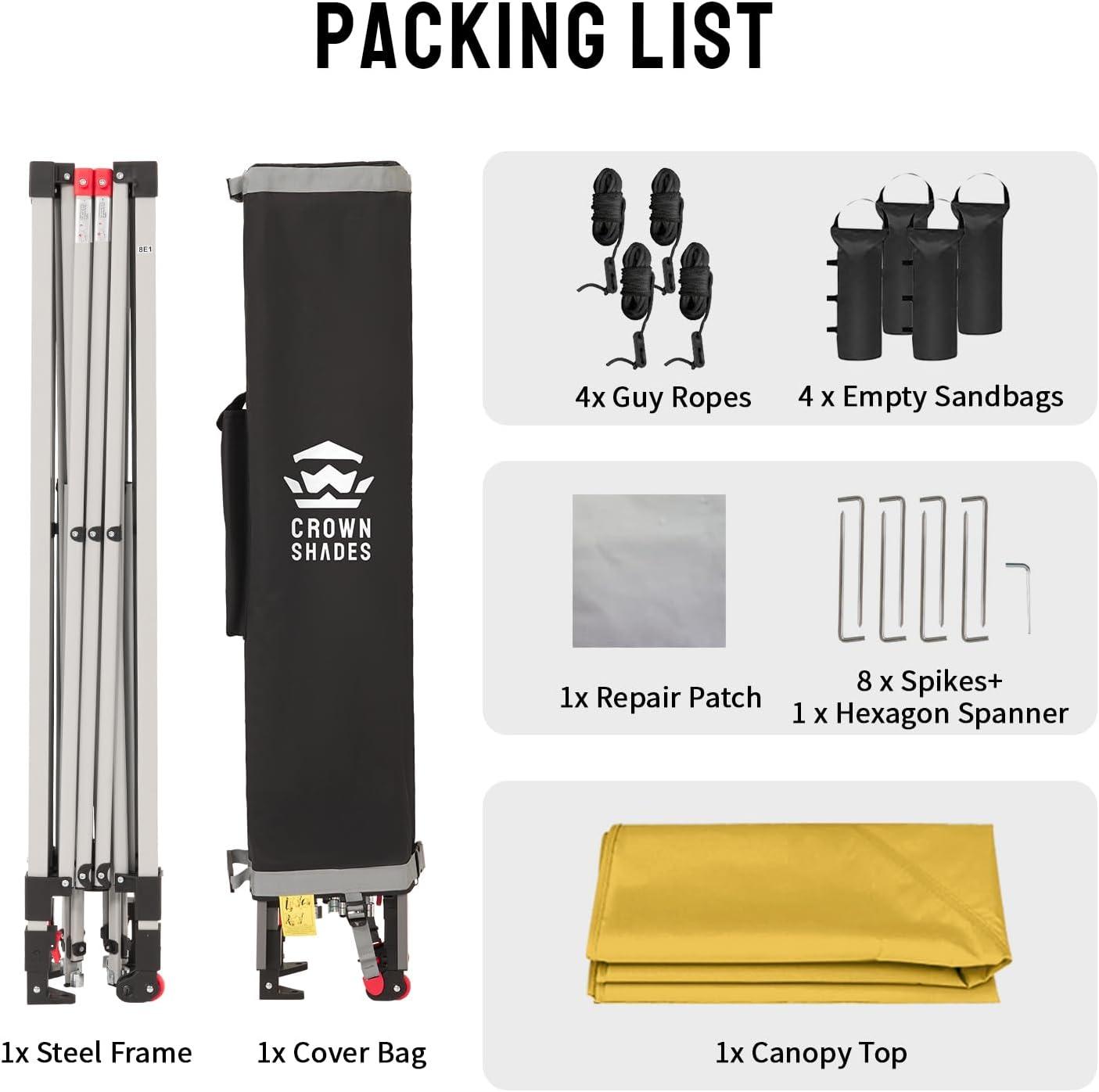 Be the first to review “CROWN SHADES 10×10 Pop Up Canopy – Beach Tent with One Push Setup – Easy Outdoor Sun Shade for Events, Parties, Camping – Gazebo with STO-N-Go Cover Bag, Silver Coated Top, Red Strips(Yellow)”