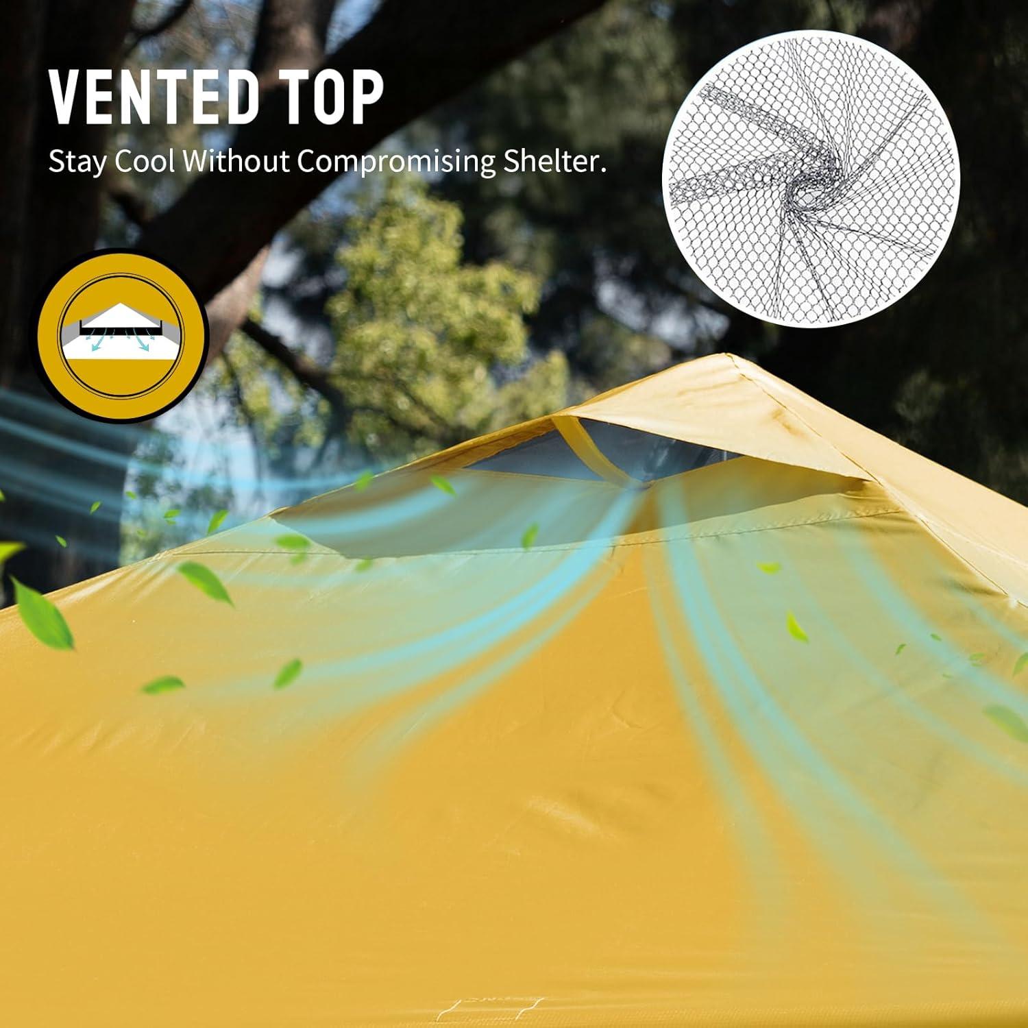 FAST CLIP CANOPY FABRIC – The new clip system easily attaches the canopy fabric to the frame. The silver-coated interior provides UPF 50+ UV protection, ensuring cooler and safer shade. Made from rugged 150D fabric, the pop up tent is water-resistant and flame-resistant (CPAI-84). Integrated air vents and the Fast Clip system prevent wind lift and rain pooling, reducing fabric tearing risks. This innovative design is ideal for outdoor events and gatherings