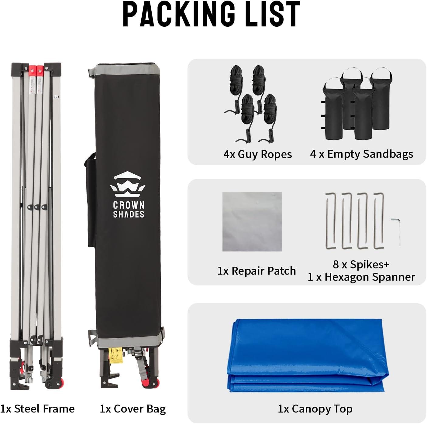 STO’ N GO SYSTEM – Our lift-free system makes collapsing, storing, and transporting the 10×10 tent a breeze. The 10×10 popup canopy can be stored with the fabric attached, with a specialized pocket for 4 sandbags, 8 stakes, and 4 guy ropes. Integrated wheels in the feet allow easy movement even when the instant shelter tent is set up, by simply lifting the side without wheels. This feature is especially useful for quick setup and takedown at locations like the patio or sports events