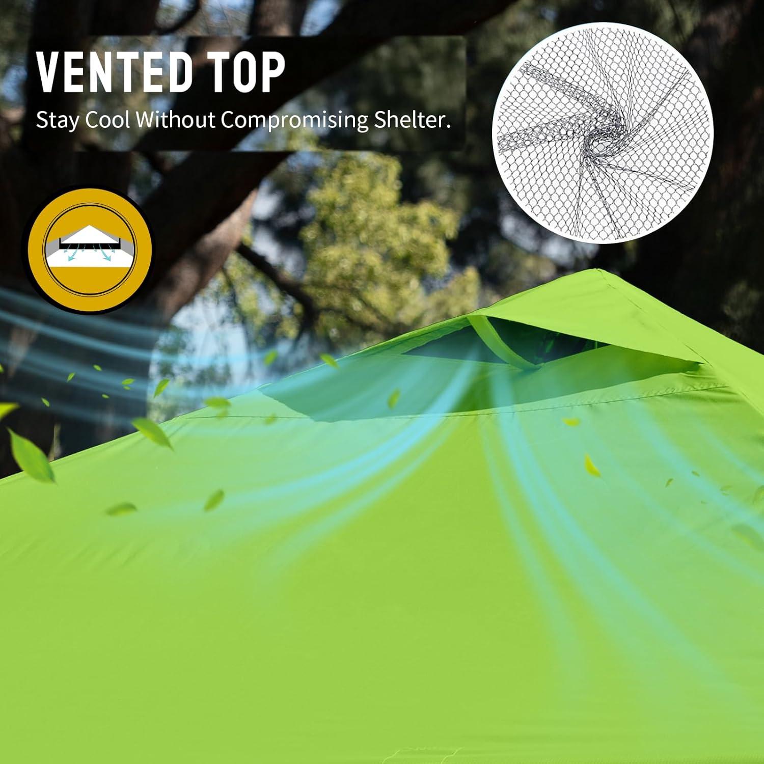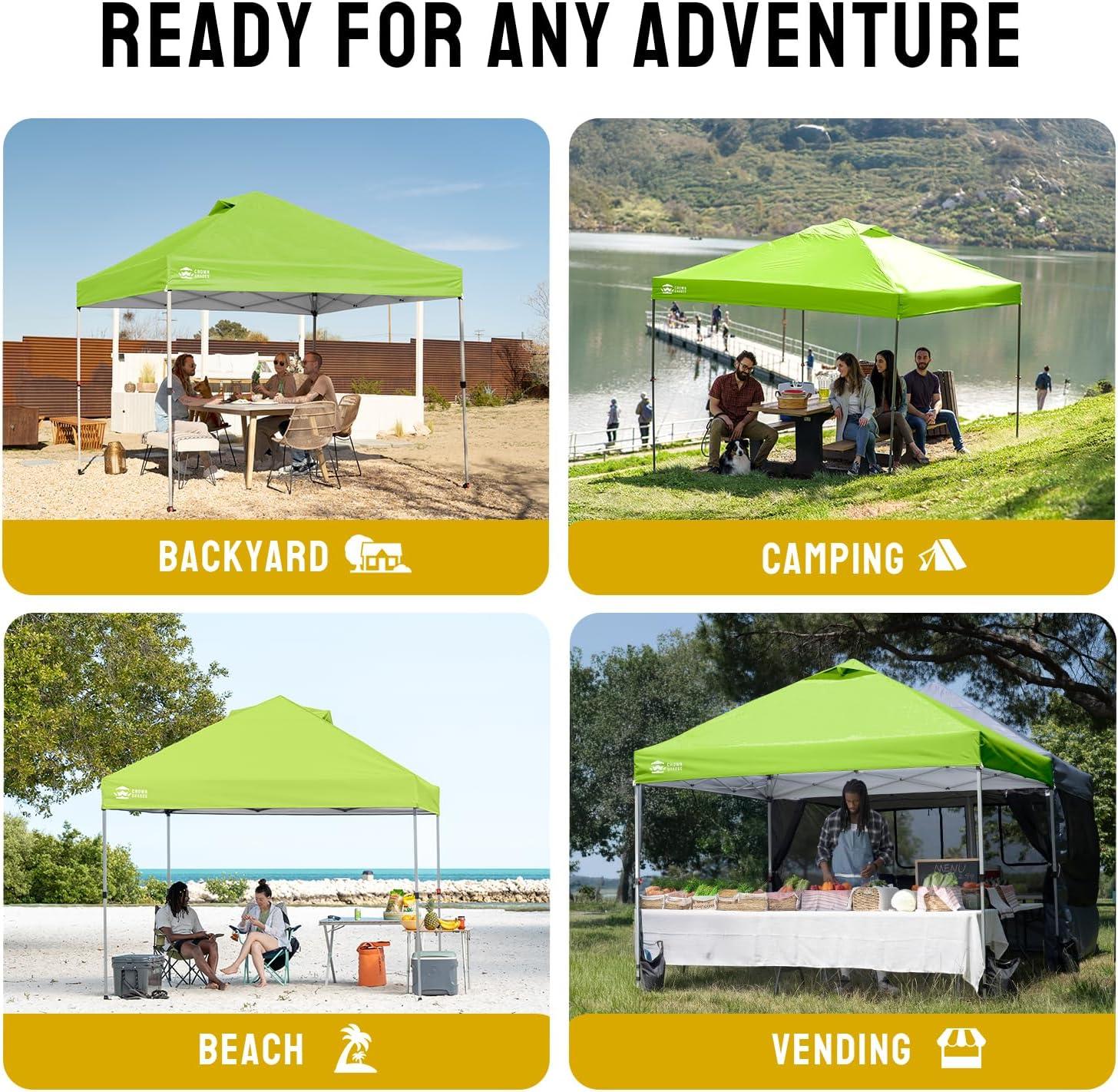 ONE BUTTON EASY SET UP – Our 10×10 pop up canopy tent features patented one push center lock tech. With just a single push, the central hub locks the poles in place. Designed for the next generation, this outdoor canopy for patio can be set up by two people in seconds without any tools. Three adjustable height settings with soft, pinch-free buttons ensure convenience and safety, making it perfect for camping, beach outings, craft fairs, tailgating, farmer markets, outdoor BBQs, and more