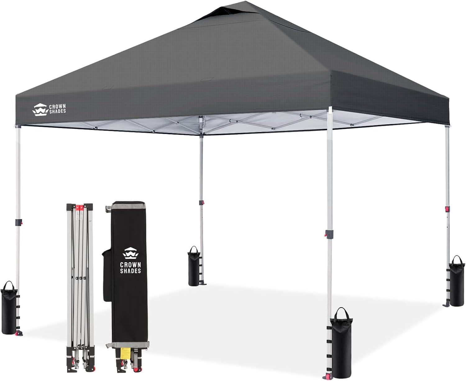 CROWN SHADES 10×10 Pop Up Canopy – Beach Tent with One Push Setup – Easy Outdoor Sun Shade Shelter for Events, Parties – Gazebo with STO-N-Go Cover Bag, Silver Coated Top,Light Gray(Grid Grey)