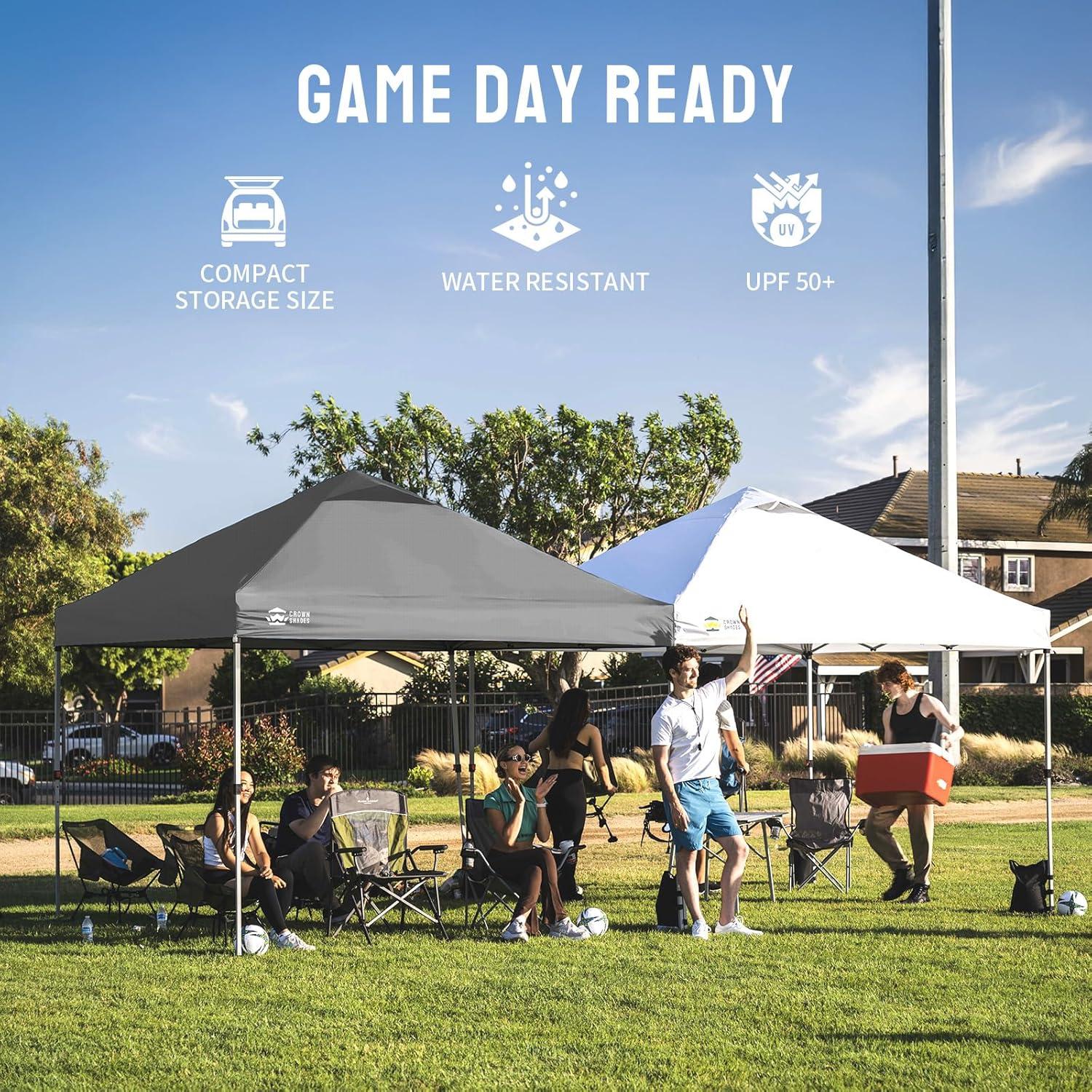 ONE BUTTON EASY SET UP – Our 10×10 pop up canopy tent features patented one push center lock tech. With just a single push, the central hub locks the poles in place. Designed for the next generation, this outdoor canopy for patio can be set up by two people in seconds without any tools. Three adjustable height settings with soft, pinch-free buttons ensure convenience and safety, making it perfect for camping, beach outings, craft fairs, tailgating, farmer markets, outdoor BBQs, and more
