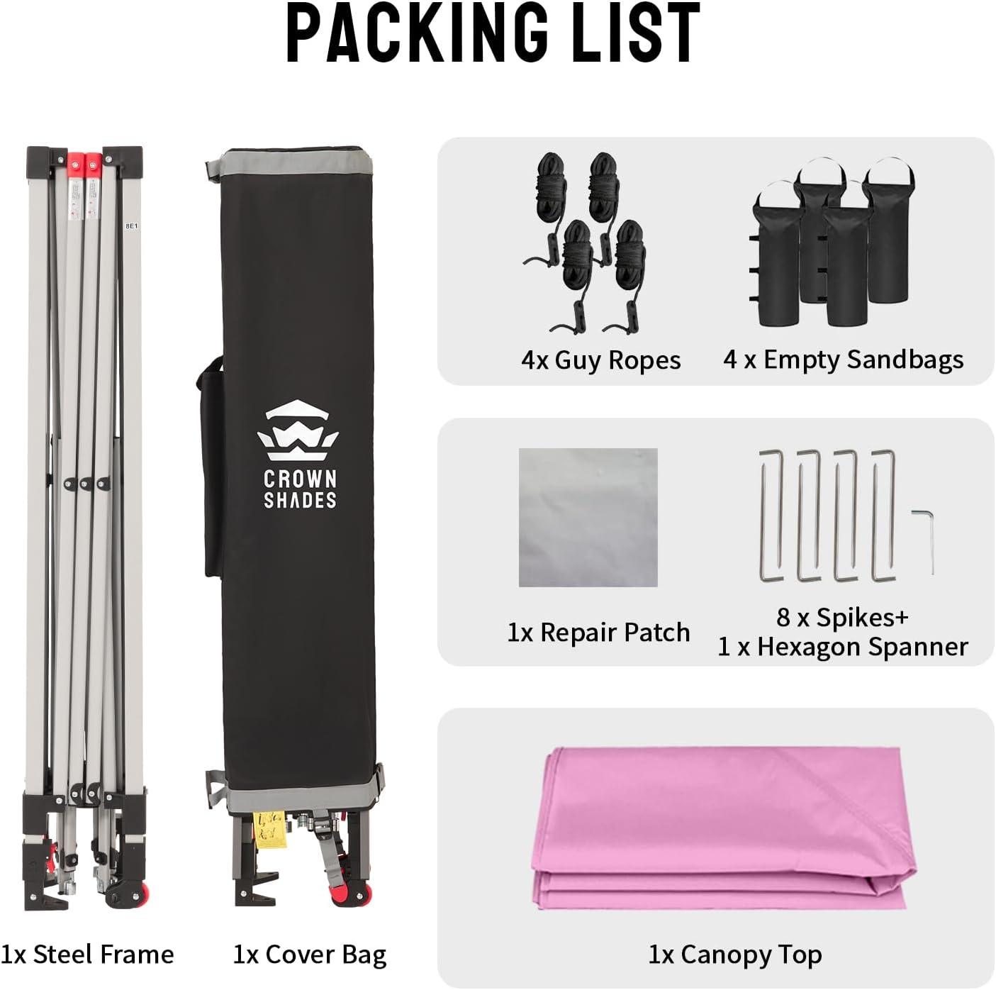 Be the first to review “CROWN SHADES 10×10 Pop Up Canopy – Beach Tent with One Push Setup – Easy Outdoor Sun Shade Shelter for Events, Parties – Gazebo with STO-N-Go Cover Bag, Silver Coated Top,Light Gray(Pink)”