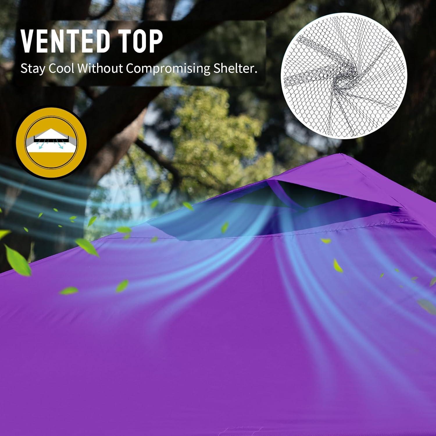 ONE BUTTON EASY SET UP – Our 10×10 pop up canopy tent features patented one push center lock tech. With just a single push, the central hub locks the poles in place. Designed for the next generation, this outdoor canopy for patio can be set up by two people in seconds without any tools. Three adjustable height settings with soft, pinch-free buttons ensure convenience and safety, making it perfect for camping, beach outings, craft fairs, tailgating, farmer markets, outdoor BBQs, and more