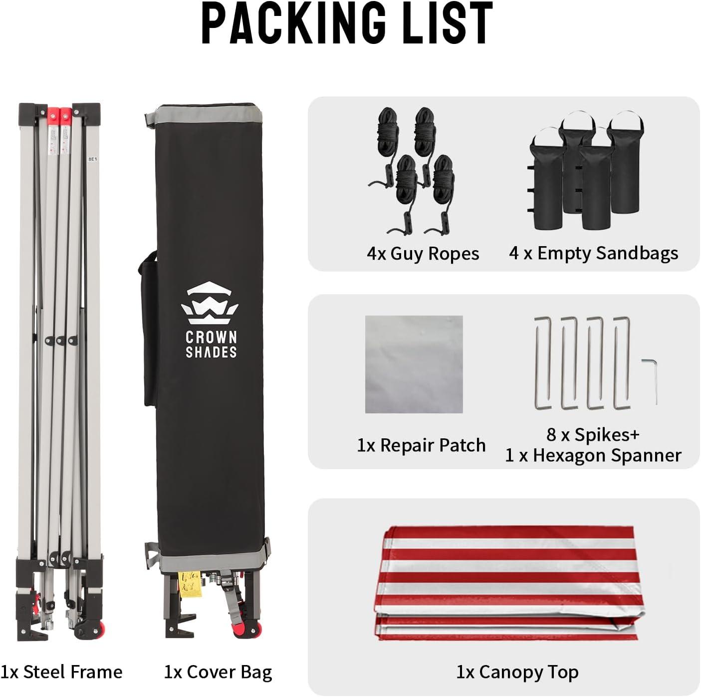 Be the first to review “CROWN SHADES 10×10 Pop Up Canopy – Beach Tent with One Push Setup – Easy Outdoor Sun Shade Shelter for Events, Parties – Gazebo with STO-N-Go Cover Bag, Silver Coated Top,Light Gray(Red Stripes)”