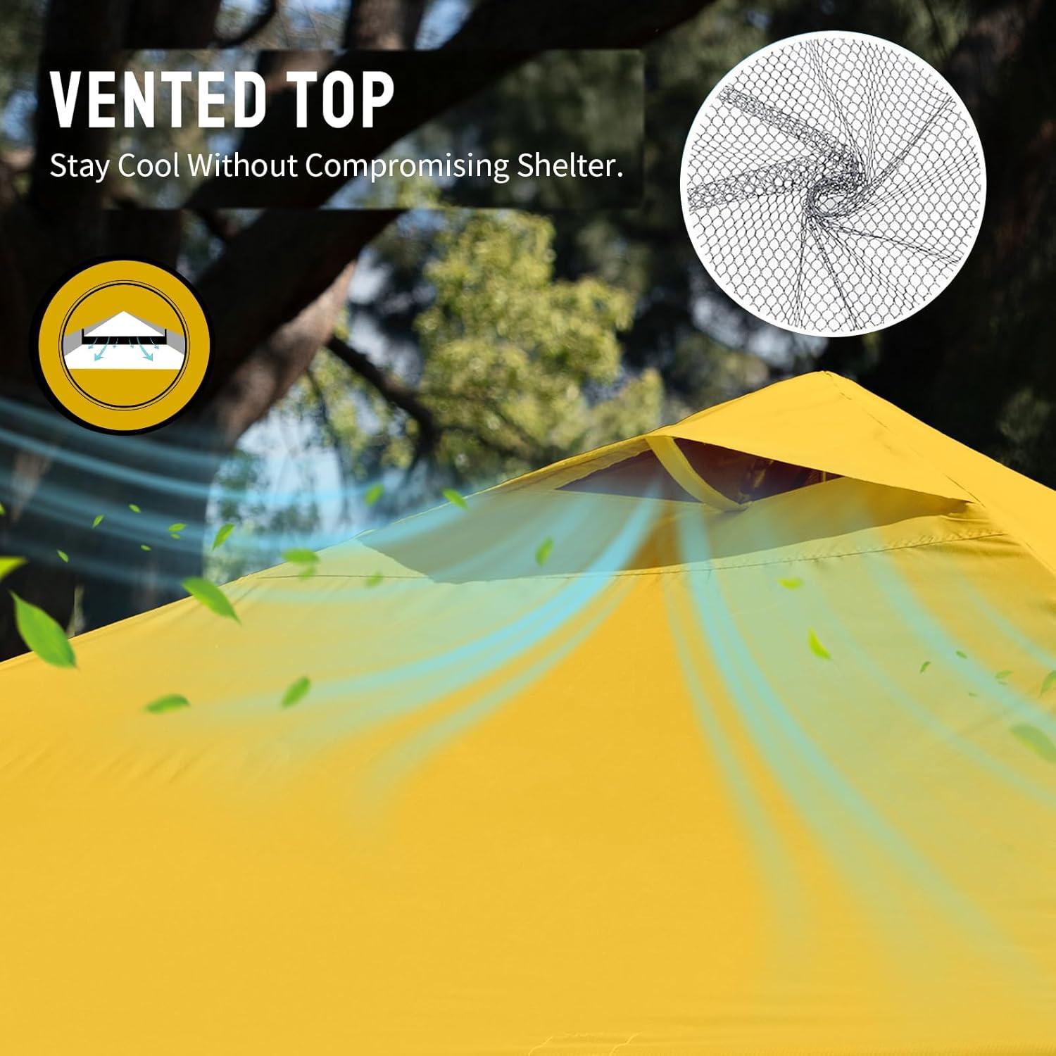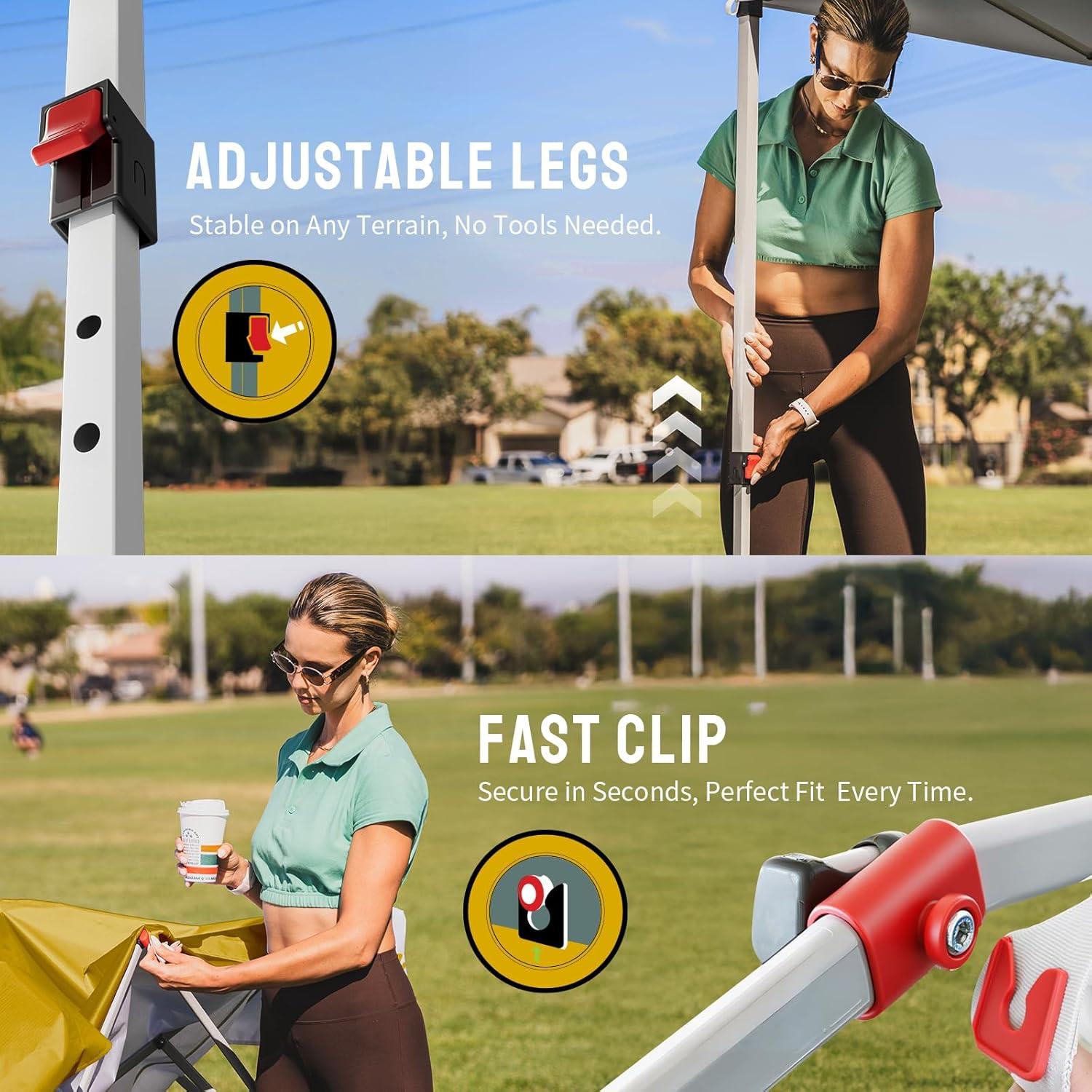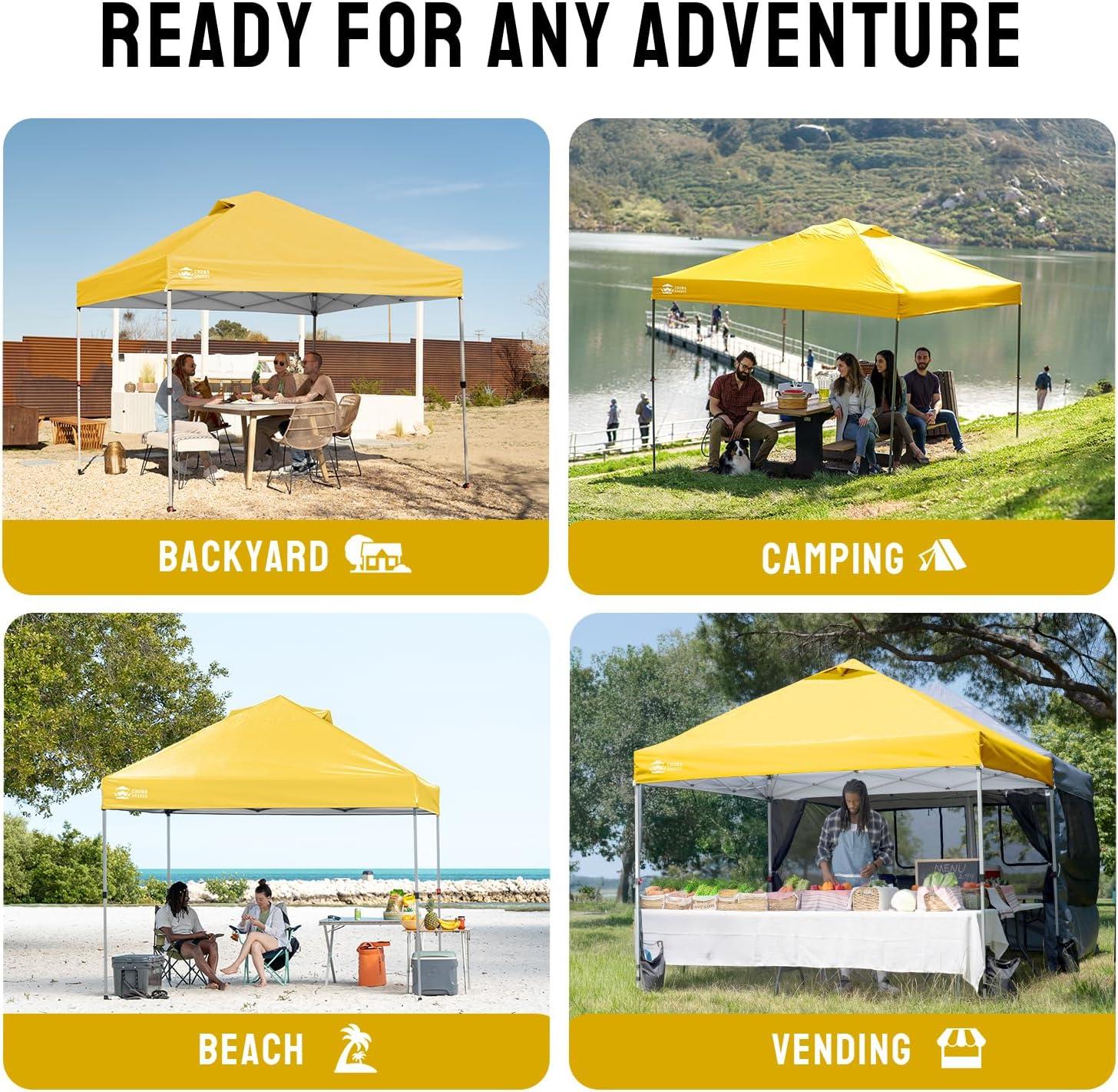 ONE BUTTON EASY SET UP – Our 10×10 pop up canopy tent features patented one push center lock tech. With just a single push, the central hub locks the poles in place. Designed for the next generation, this outdoor canopy for patio can be set up by two people in seconds without any tools. Three adjustable height settings with soft, pinch-free buttons ensure convenience and safety, making it perfect for camping, beach outings, craft fairs, tailgating, farmer markets, outdoor BBQs, and more