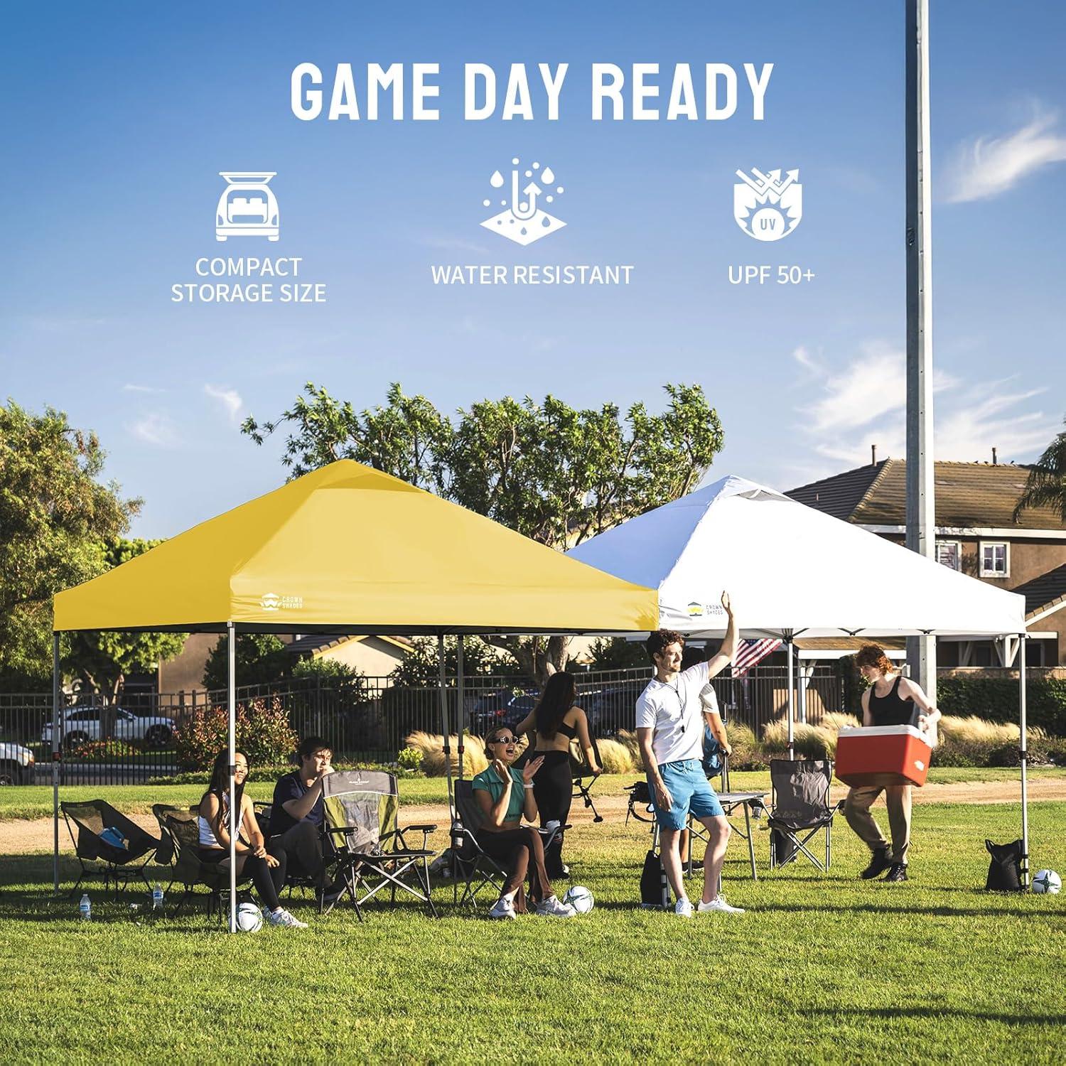 imageCROWN SHADES 10x10 Pop Up Canopy  Beach Tent with One Push Setup  Easy Outdoor Sun Shade Shelter for Events Parties  Gazebo with STONGo Cover Bag Silver Coated TopLight GrayYellow