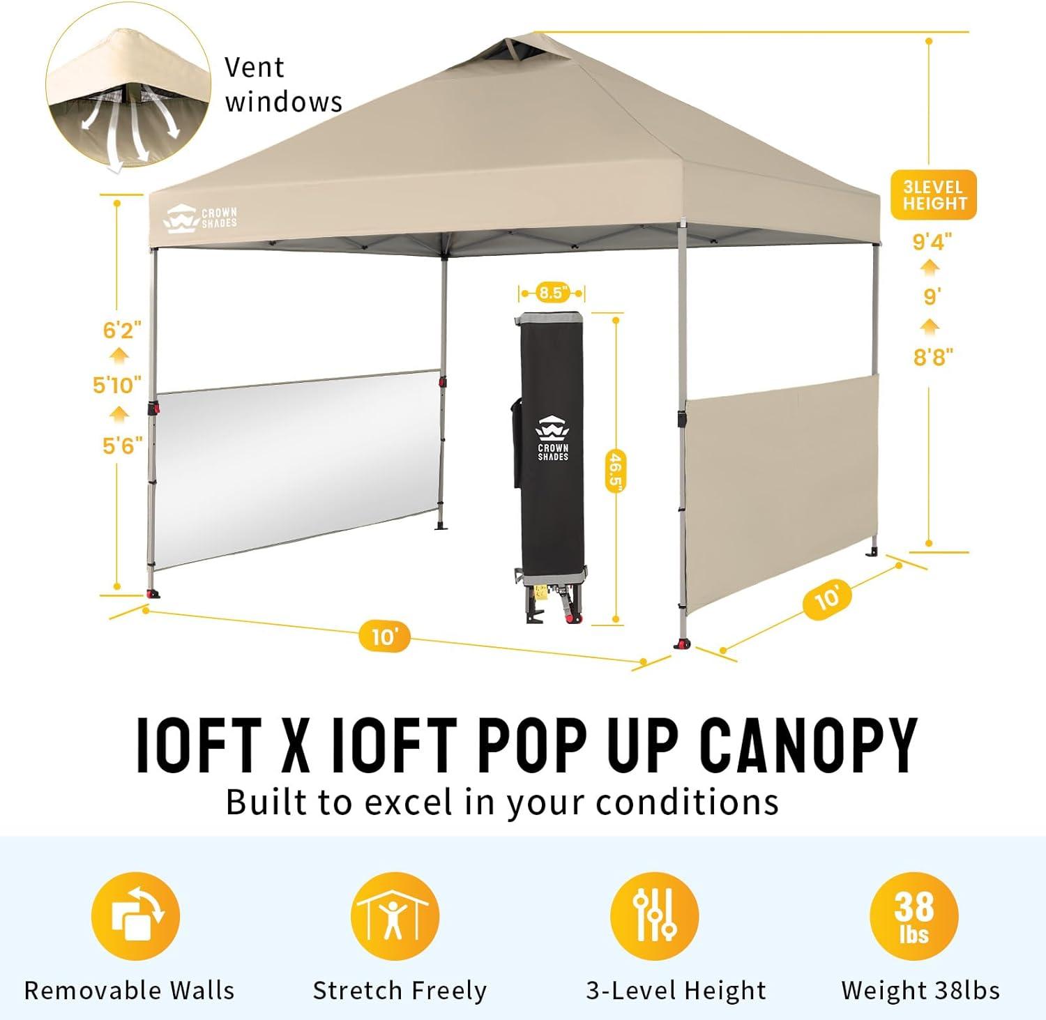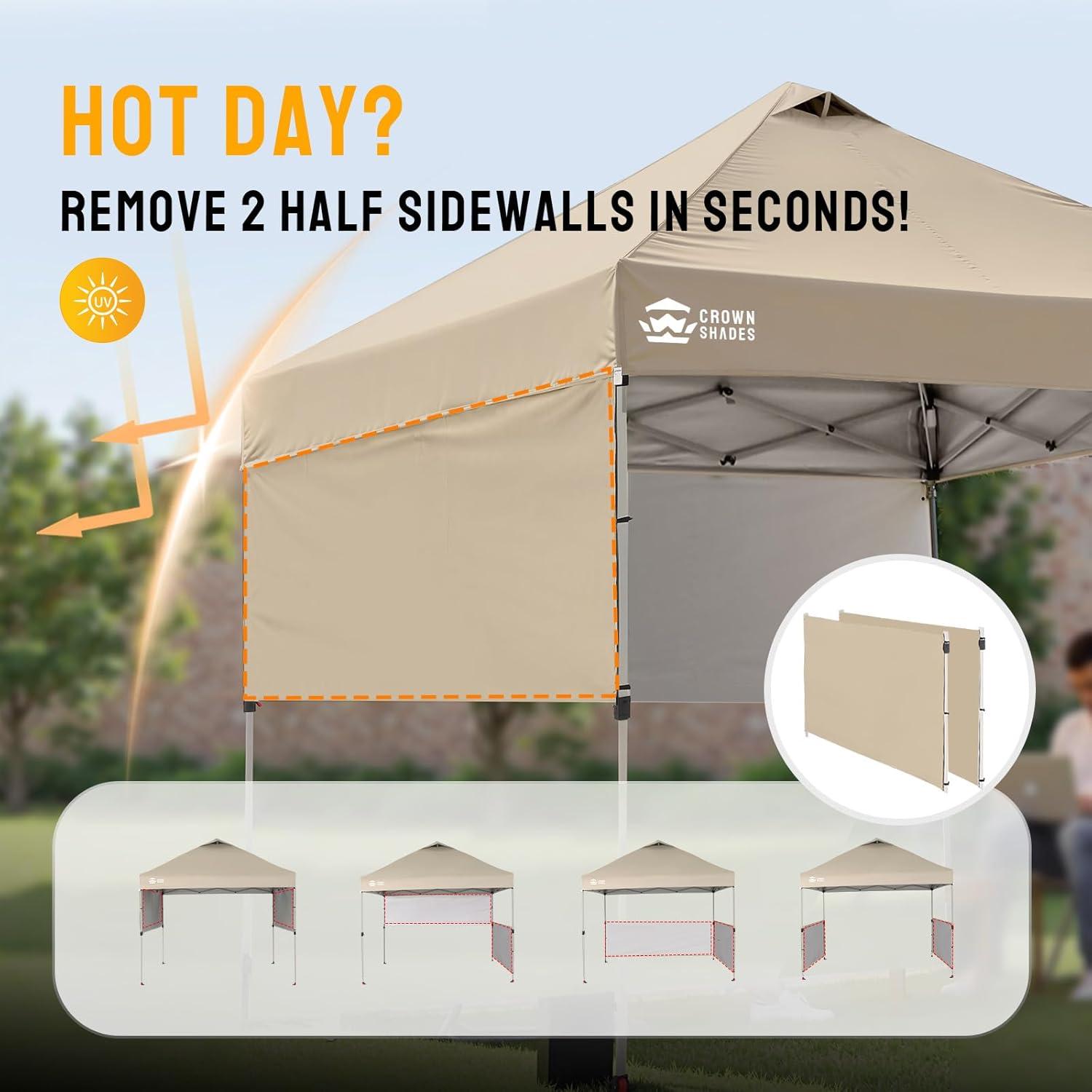 [INCLUDES]: Sto'N Go Bag for easy transport and compact storage size fits in most vehicles. The 10 x 10 pop up canopy tent bag features a specialized pocket for the included 8 stakes, 4 guy ropes, 2 removable half sidewalls, and 4 empty weight bags.