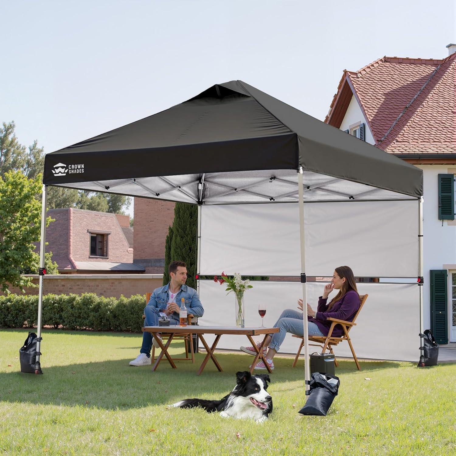 imageCROWN SHADES 10x10 Pop up Canopy Tent Instant Canopy with 150D Silver Coated Fabric Including 2 Half Sidewalls 4 Ropes 8 Stakes 4 Weight Bags STO N Go Bag WhiteBlack