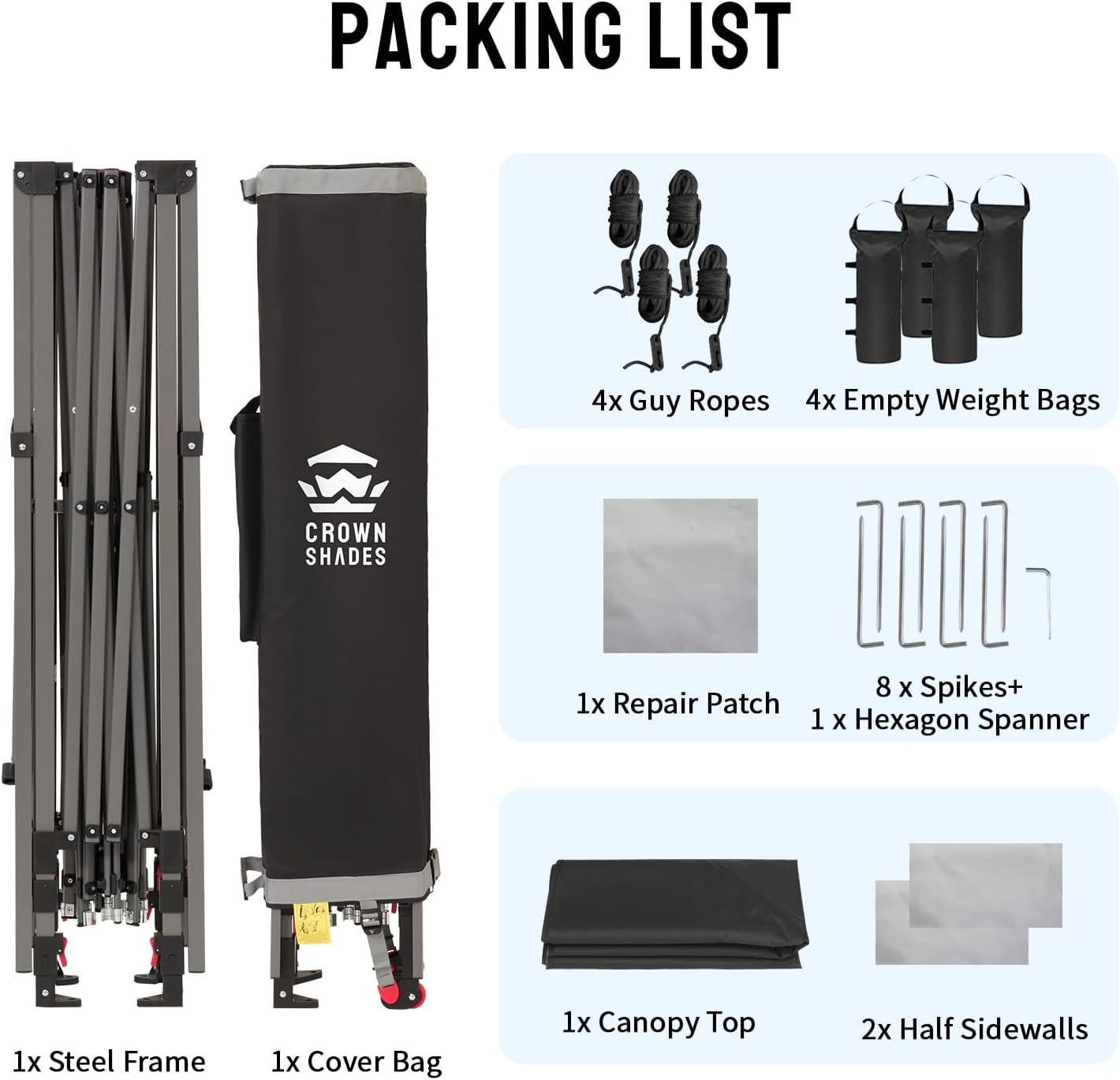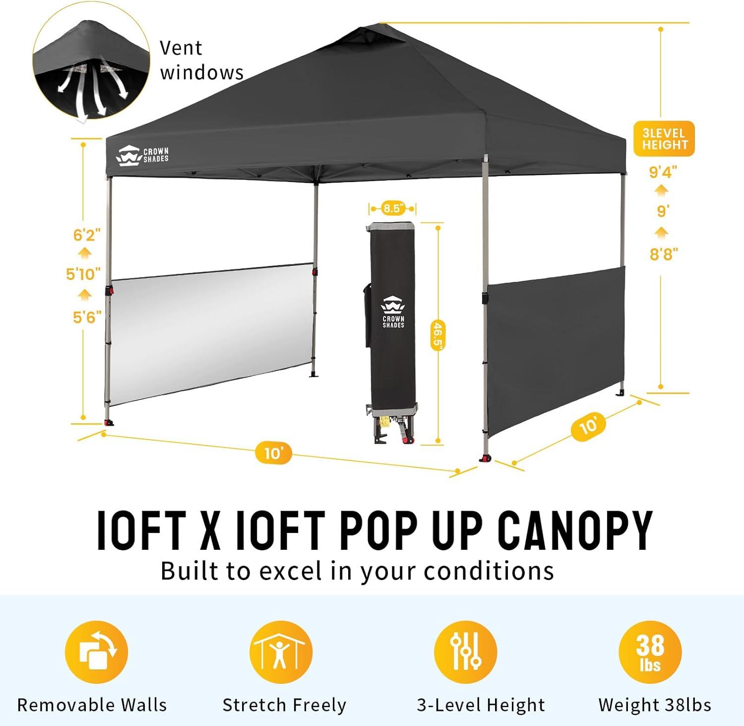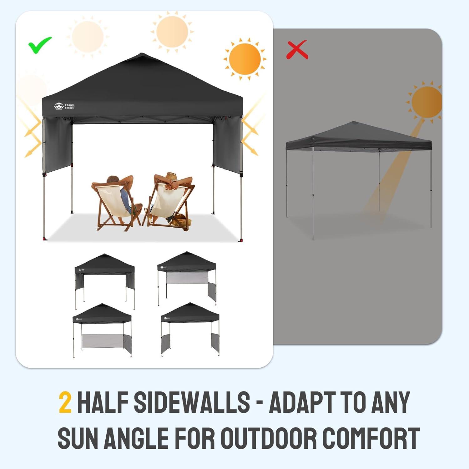 CROWN SHADES 10×10 Pop up Canopy Tent Instant Canopy with 150D Silver Coated Fabric Including 2 Half Sidewalls, 4 Ropes, 8 Stakes, 4 Weight Bags, STO ‘N Go Bag, White(Black)