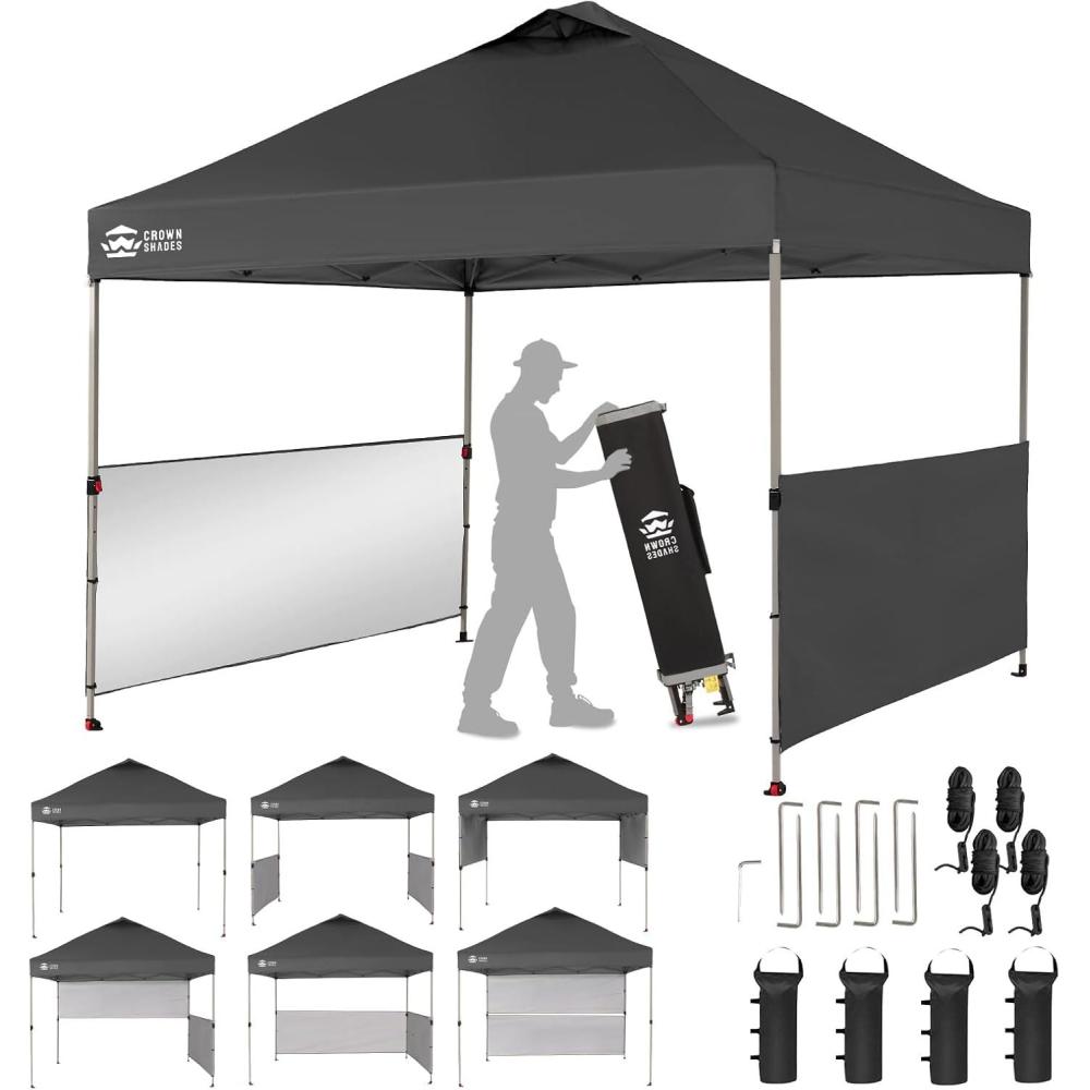 imageCROWN SHADES 10x10 Pop up Canopy Tent Instant Canopy with 150D Silver Coated Fabric Including 2 Half Sidewalls 4 Ropes 8 Stakes 4 Weight Bags STO N Go Bag WhiteGrid Gray