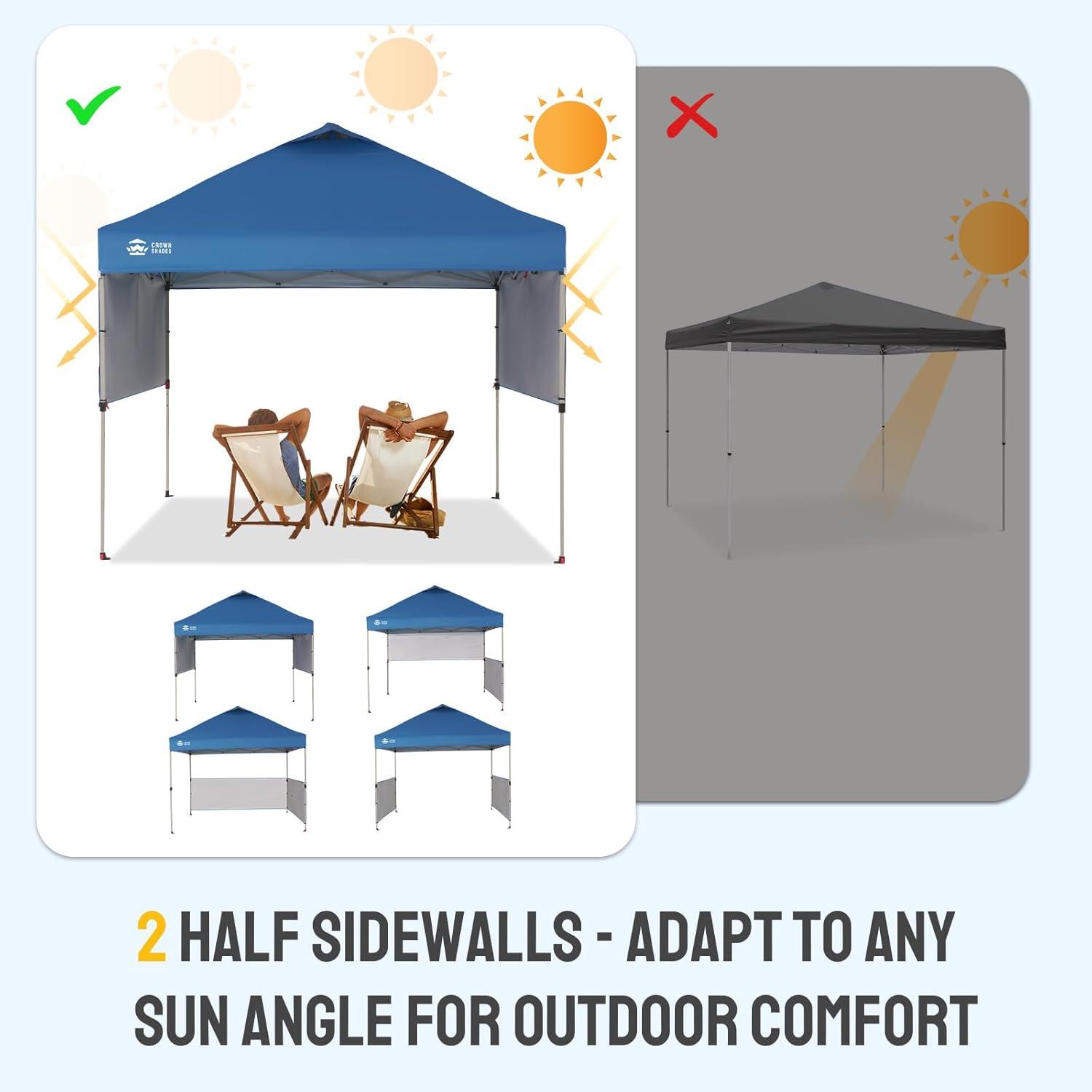 CROWN SHADES 10×10 Pop up Canopy Tent Instant Canopy with 150D Silver Coated Fabric Including 2 Half Sidewalls, 4 Ropes, 8 Stakes, 4 Weight Bags, STO ‘N Go Bag, White(Navy Blue)