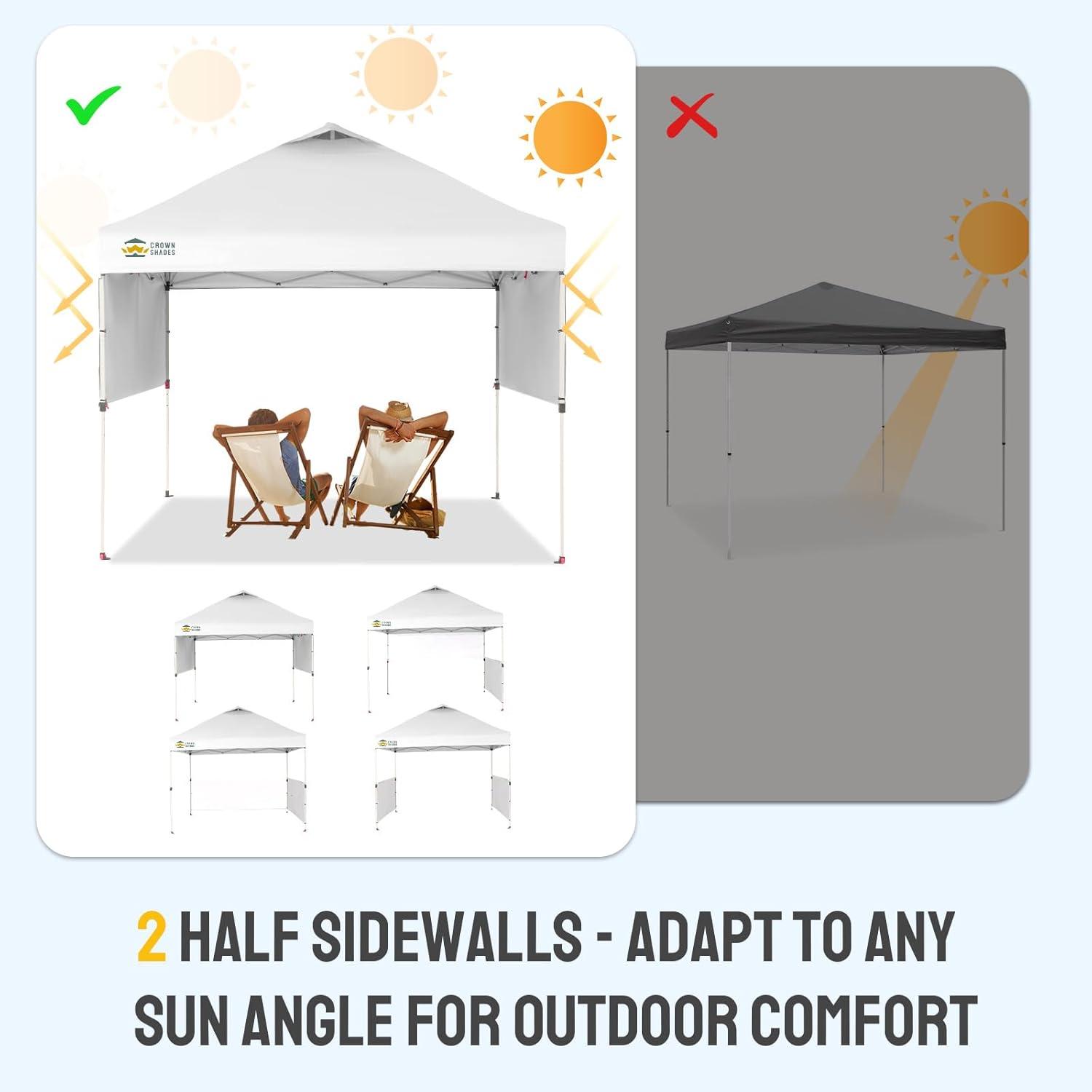CROWN SHADES 10x10 Pop up Canopy Tent Instant Canopy with 150D Silver Coated Fabric Including 2 Half Sidewalls, 4 Ropes, 8 Stakes, 4 Weight Bags, STO 'N Go Bag, White(White)