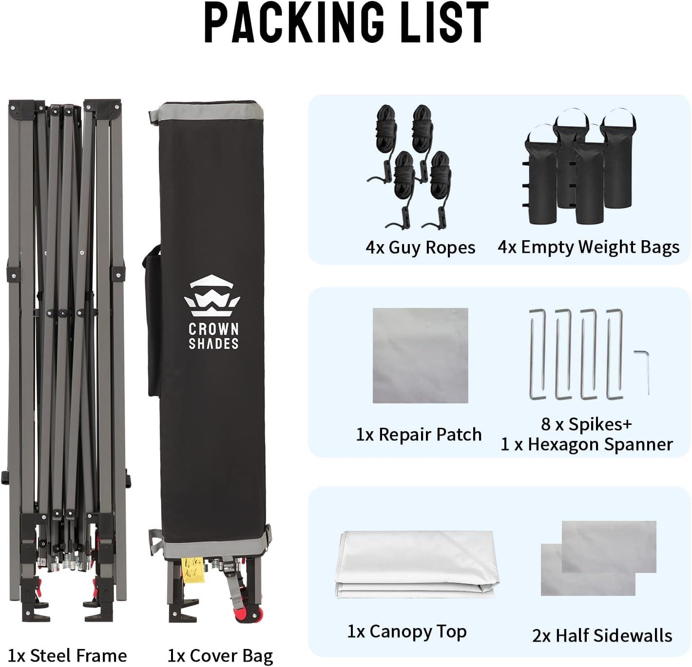CROWN SHADES 10×10 Pop up Canopy Tent Instant Canopy with 150D Silver Coated Fabric Including 2 Half Sidewalls, 4 Ropes, 8 Stakes, 4 Weight Bags, STO ‘N Go Bag, White(Black)