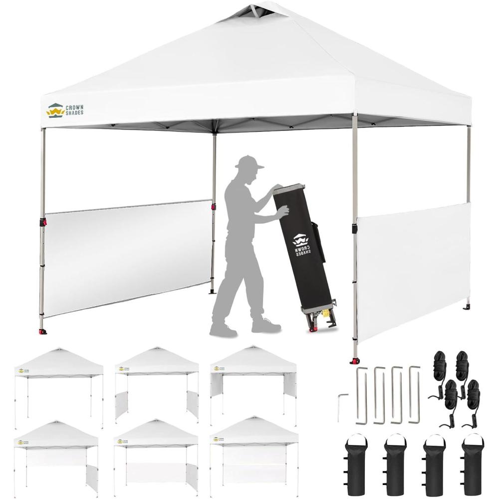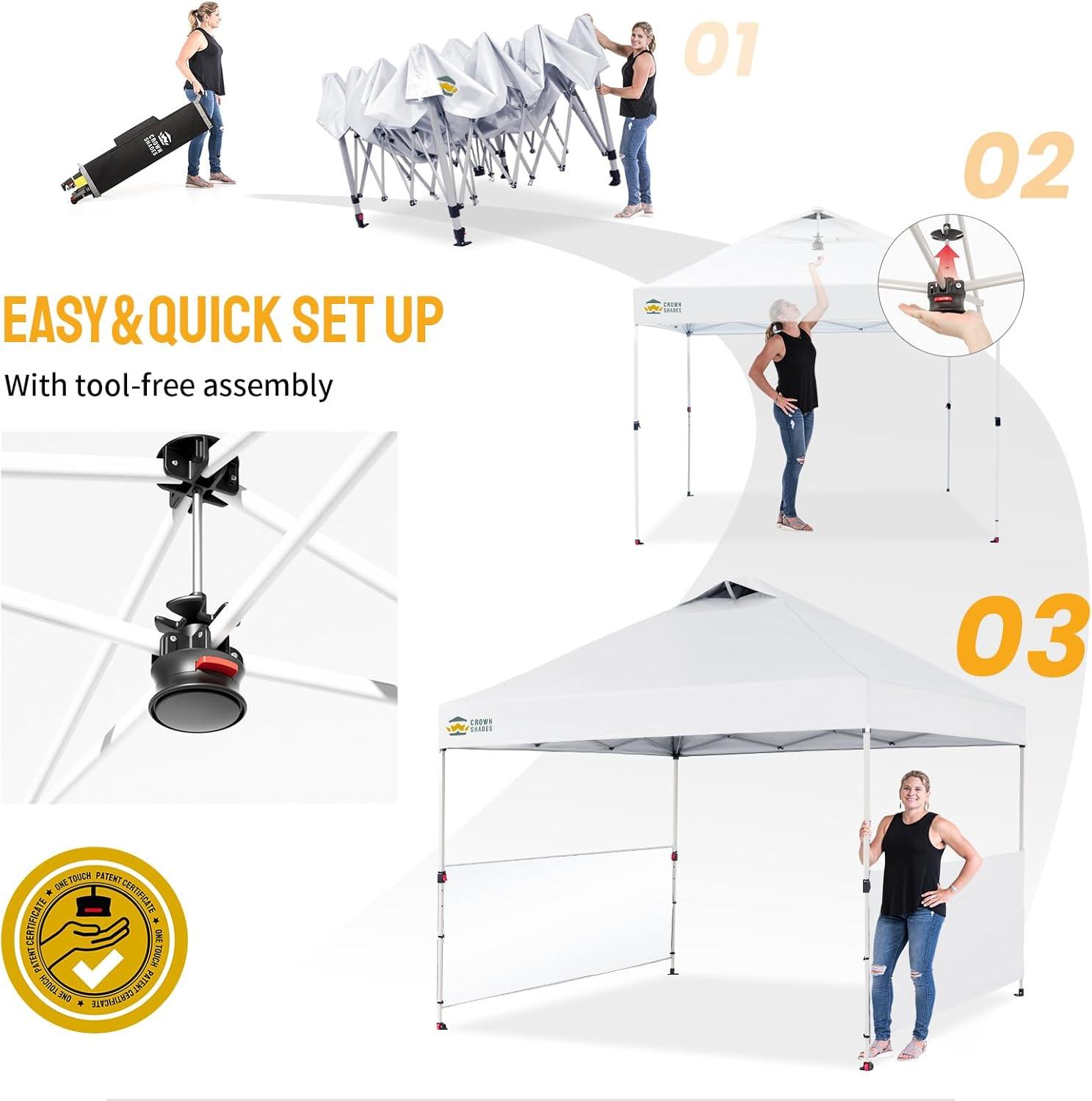 CROWN SHADES 10×10 Pop up Canopy Tent Instant Canopy with 150D Silver Coated Fabric Including 2 Half Sidewalls, 4 Ropes, 8 Stakes, 4 Weight Bags, STO ‘N Go Bag, White(White)