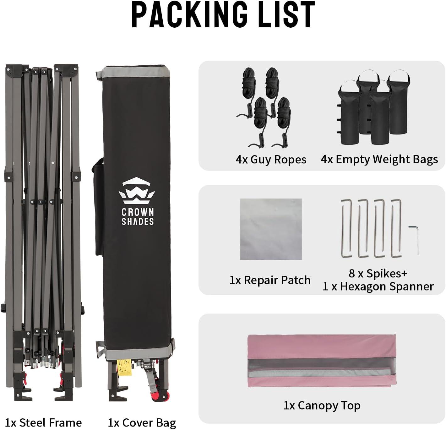 Be the first to review “CROWN SHADES 10×10 Pop up Canopy Tent, Instant Commercial Canopy with Extend Awning, Patended Centerlock, 150D Silver Coated Fabric, 4 Ropes, 8 Stakes, 4 Weight Bags, STO ‘N Go Bag, Khaki(Pink)”