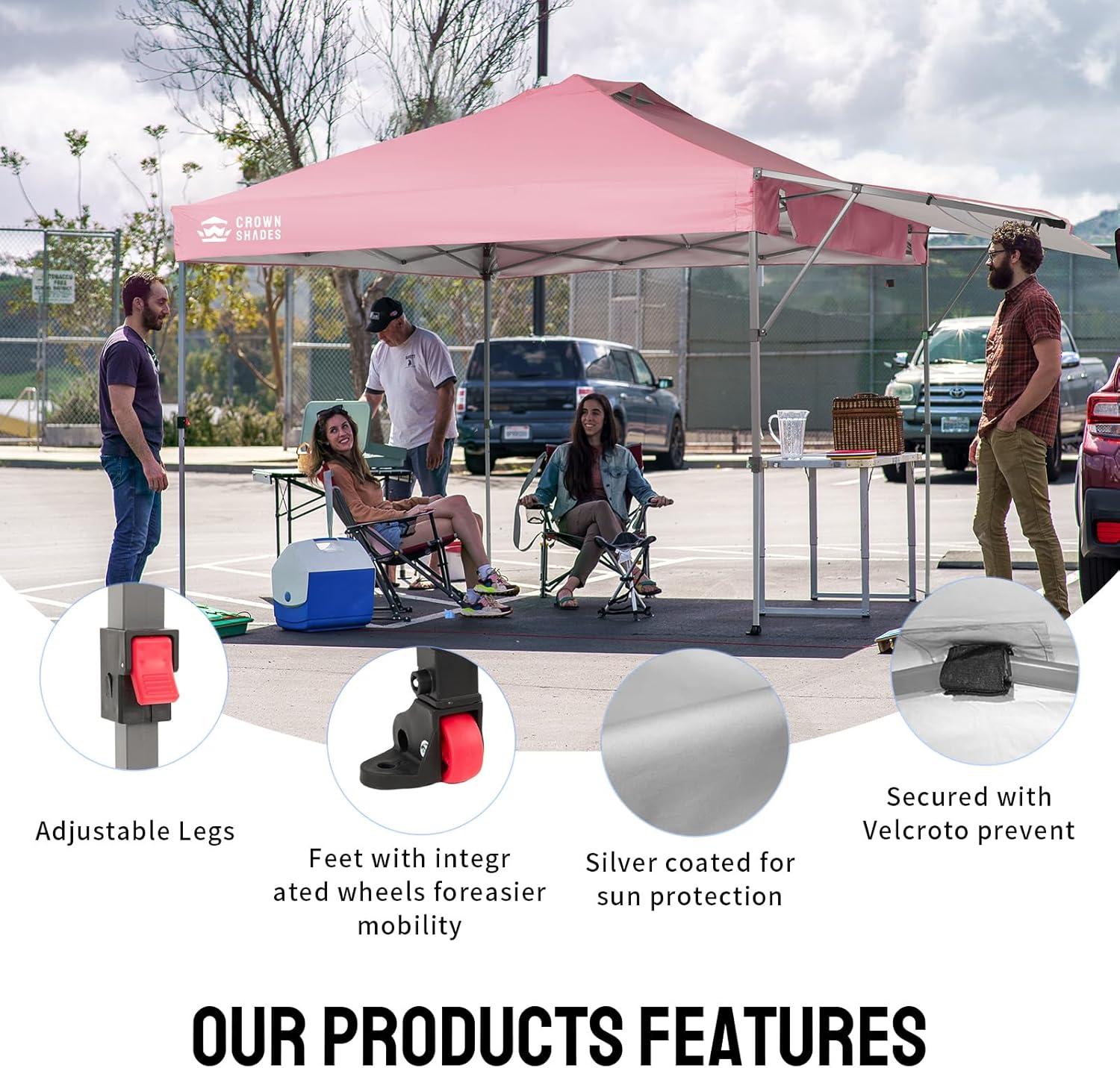 CROWN SHADES 10×10 Pop up Canopy Tent, Instant Commercial Canopy with Extend Awning, Patended Centerlock, 150D Silver Coated Fabric, 4 Ropes, 8 Stakes, 4 Weight Bags, STO ‘N Go Bag, Khaki(Pink)