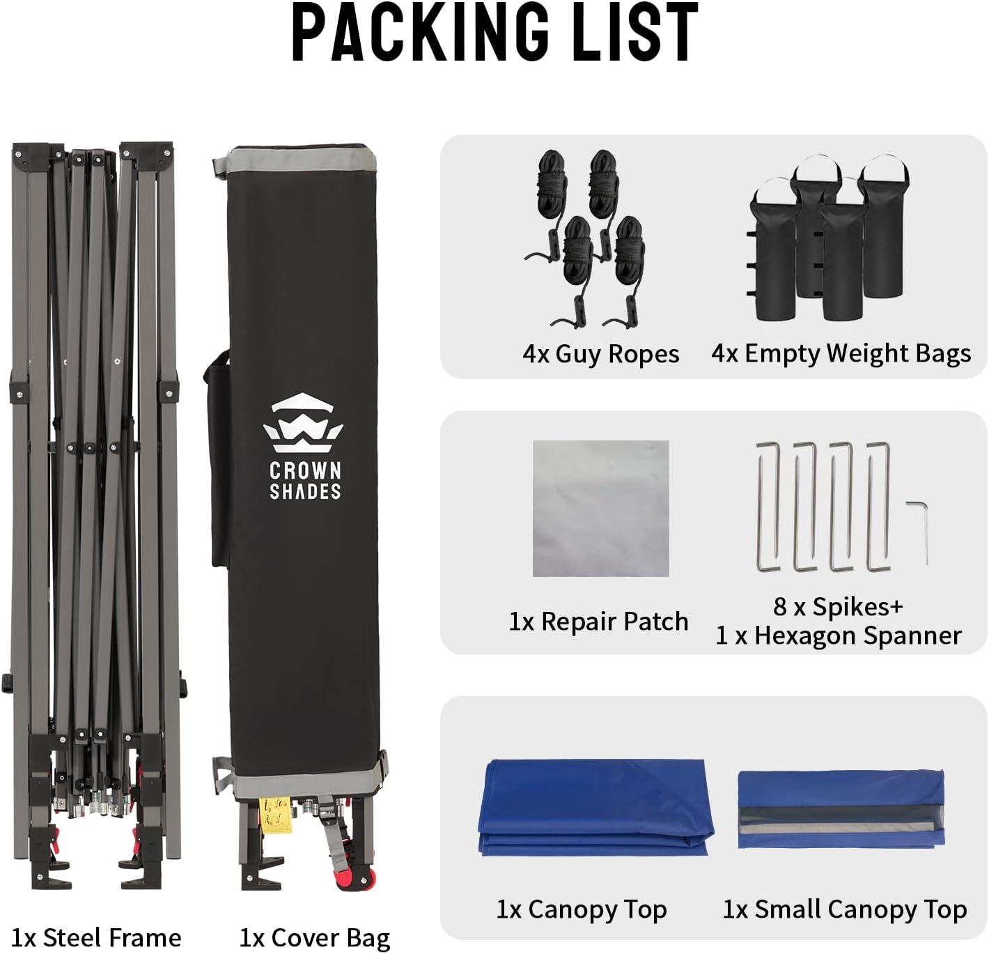 [UPGRADE FABRIC]: The canopy fabric is rugged and silver-coated, providing UPF 50+ UV protection. It is also CPAI-84-rated, flame-resistant, and water-repellent, with water-resistant seam sealing tape to prevent water leak.