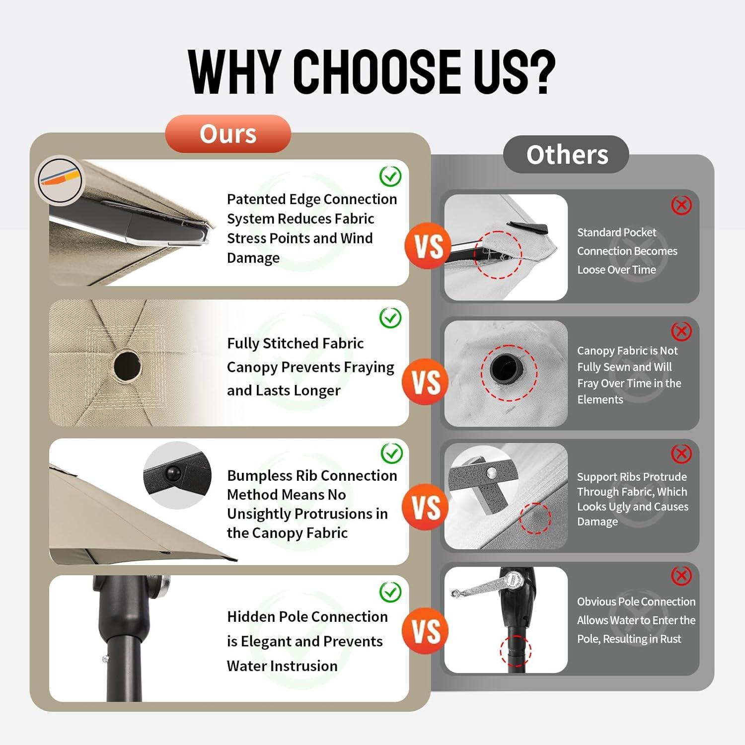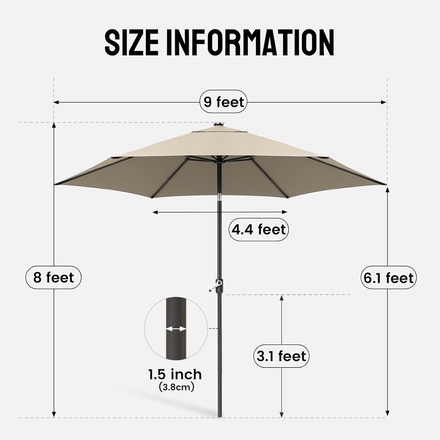 CROWN SHADES 9 Ft Patio Umbrella – Polyester Outdoor Umbrella with 30° Push Button Tilt, Patented Edge Connection Windproof Design for Patio, Pool, Garden & Table, UV Resistent