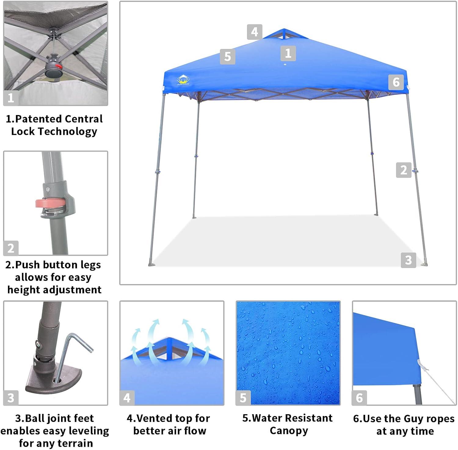 imageCROWN SHADES 9x9 Pop Up Canopy Tent Slanted Legs for Added Stability  Beach Tent Sun Shelter for Outdoor Shades  Canopy with 11x11 Base with Carry Bag WhiteBlue