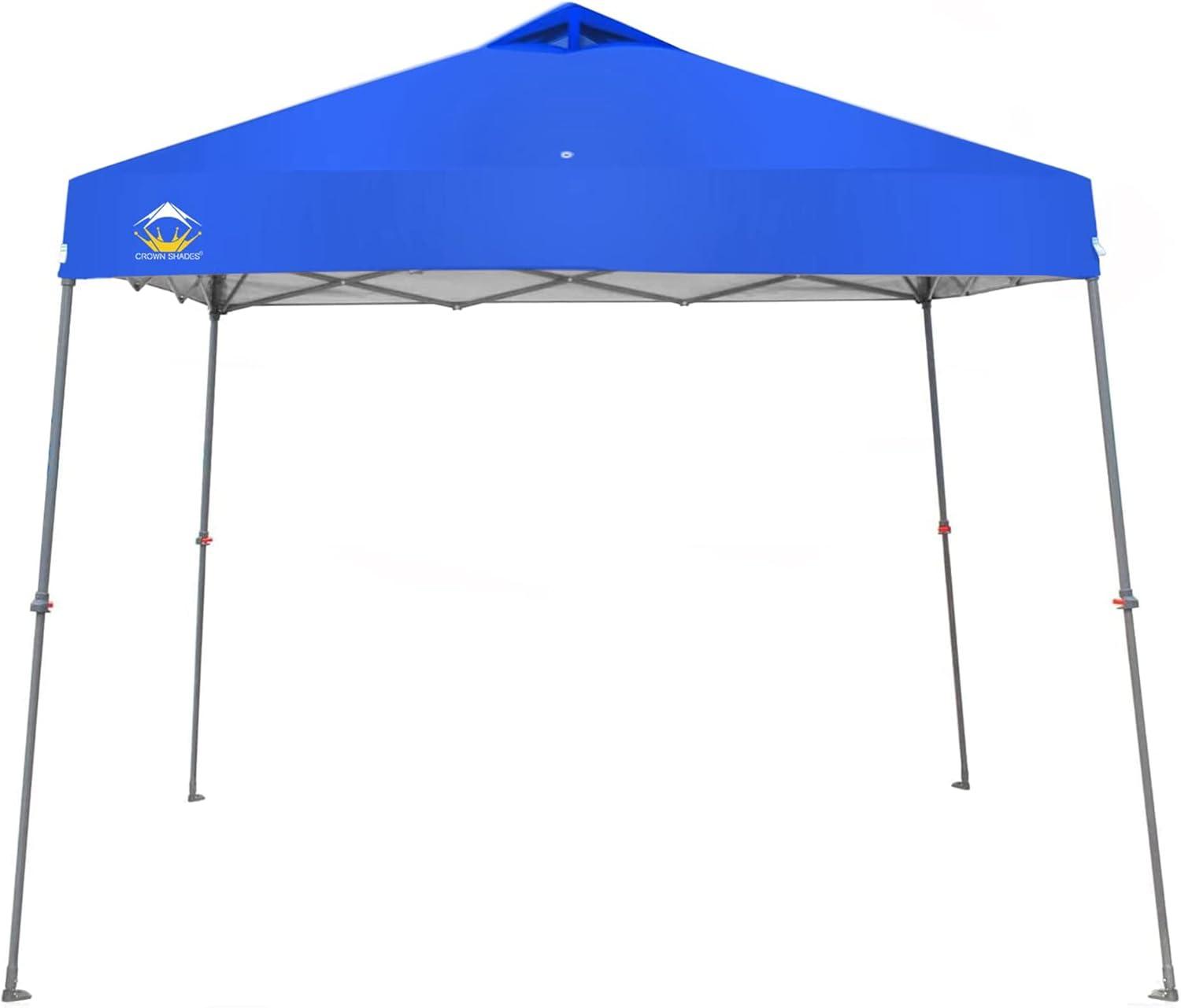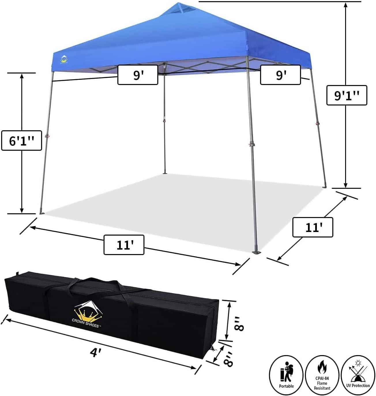 CROWN SHADES 9×9 Pop Up Canopy Tent Slanted Legs for Added Stability – Beach Tent Sun Shelter for Outdoor Shades – Canopy with 11×11 Base, with Carry Bag, White(Blue)