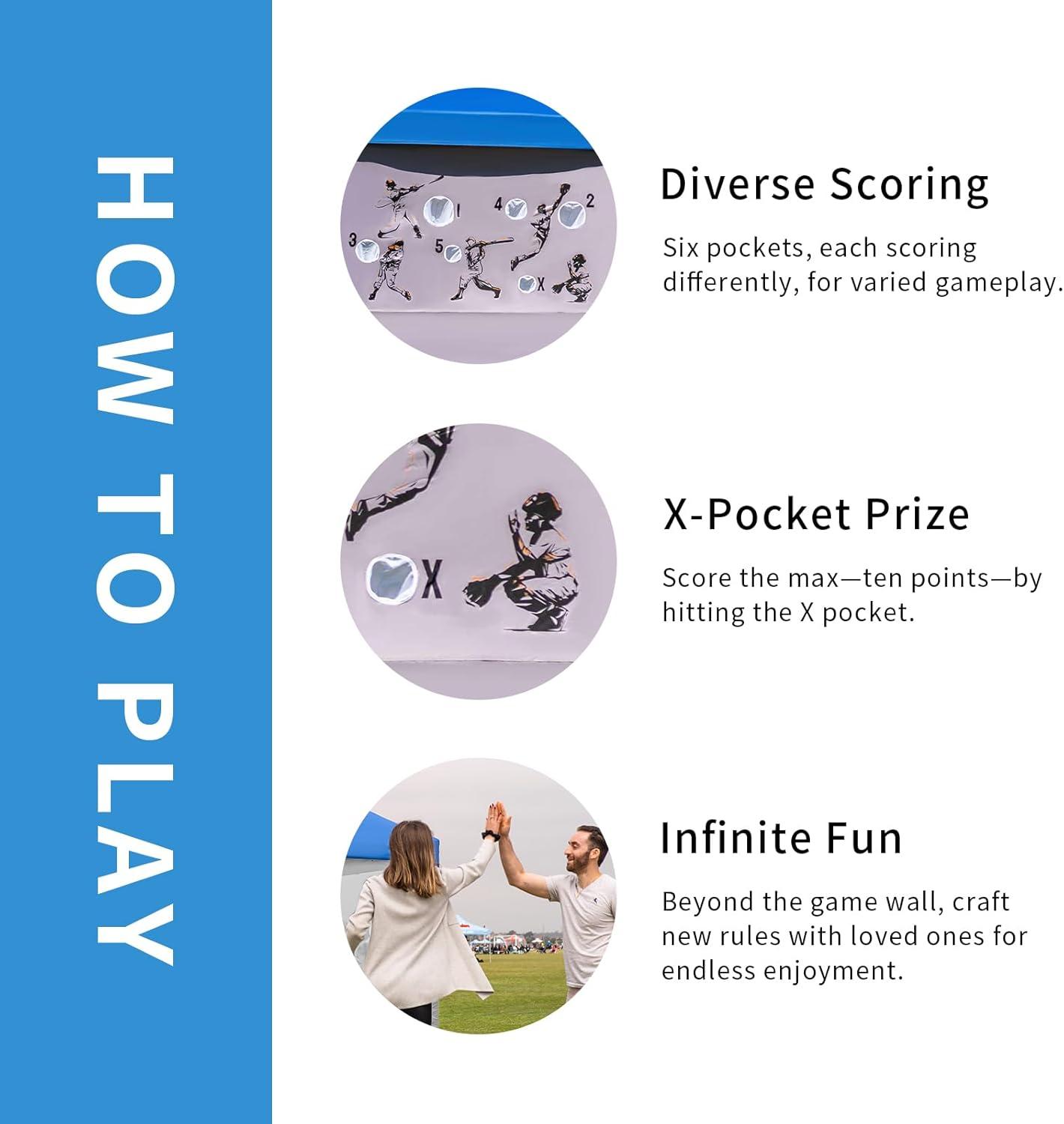 6 TARGETS & 2 BALLS: Our multiple pockets come in different sizes, offering a variety of play options to meet different rules.
